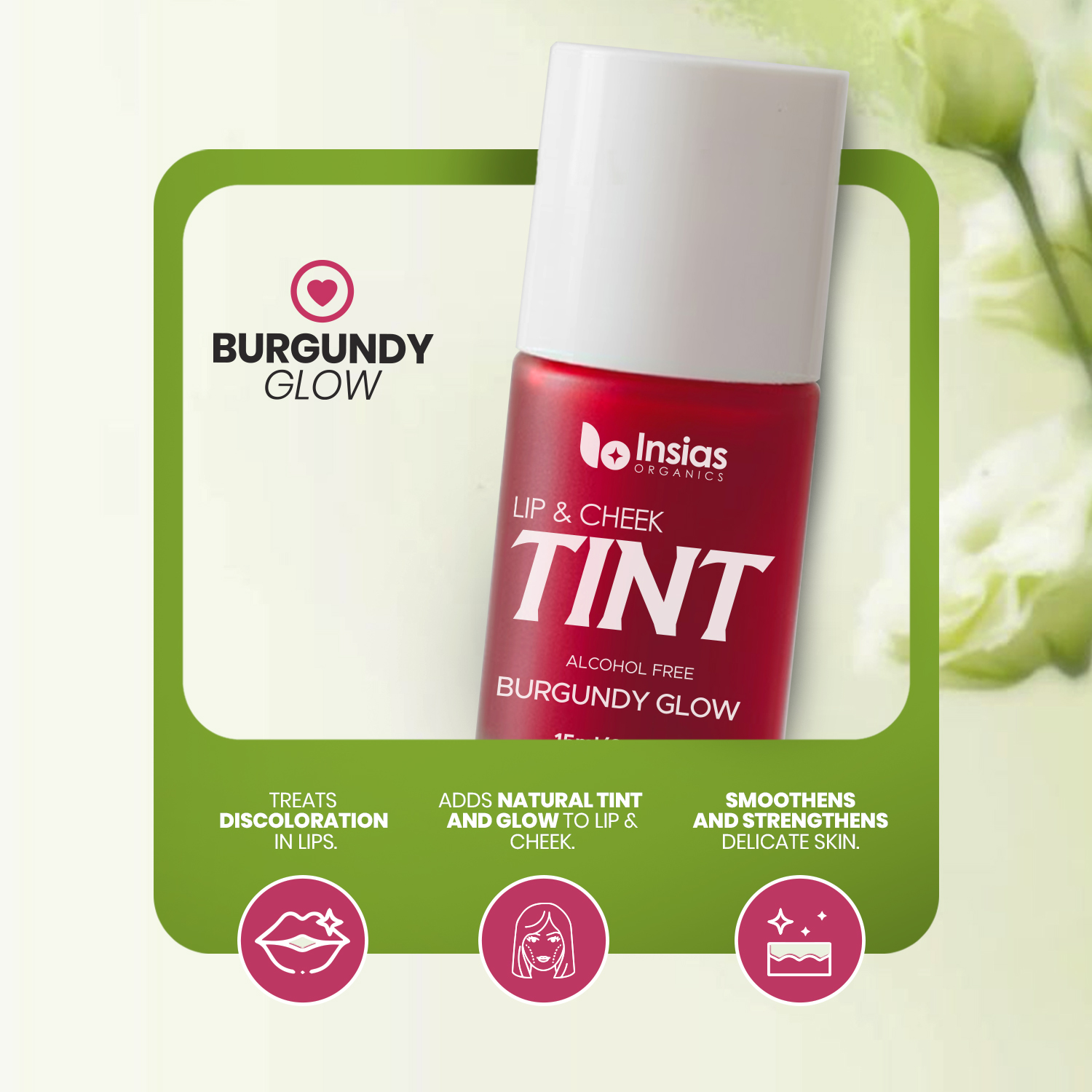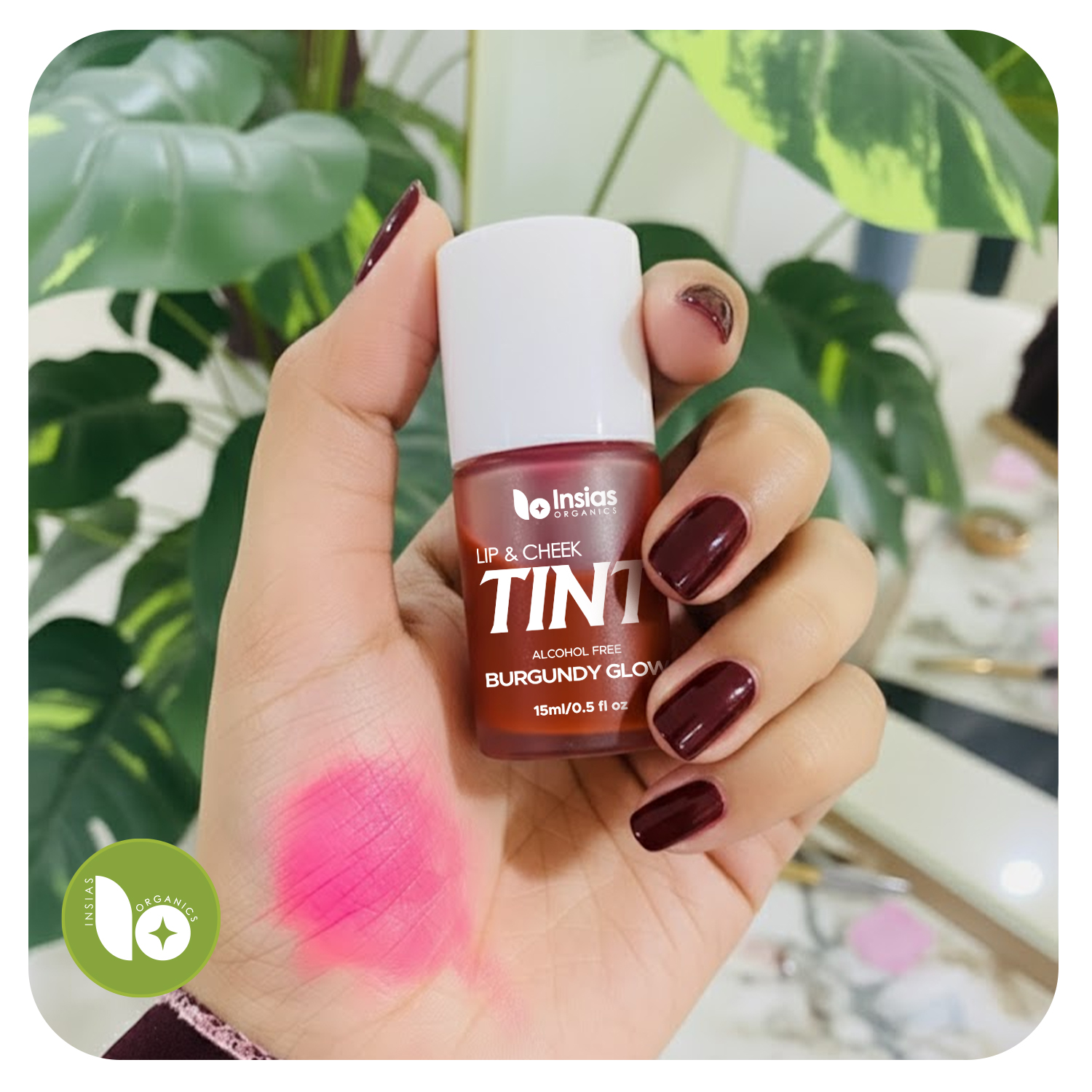 Turn heads with the Burgundy Glow Lip & Cheek Tint by Insias Organics. This deep yet natural shade is perfect for those who love a confident, bold touch without compromising on skincare. Formulated with organic ingredients, it blends effortlessly, delivering a long-lasting, buildable color that works equally well for subtle day looks or glamorous evenings.